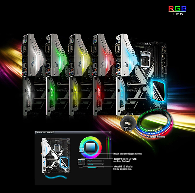 Bên cạnh đó, bo mạch còn xây dựng hệ thống ánh sáng đầy màu sắc của riêng bạn, với RGB LED và tiêu đề cho phép người dùng kết nối dải LED và tạo kiểu PC độc đáo một cách dễ dàng. Tiện ích LED ASRock RGB có thể được tải xuống trực tiếp hoặc từ tiện ích tất cả trong một ASRock Live Update & APP Shop.