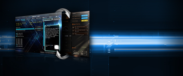 ASRock UEFI là BIOS điều khiển chuột mượt mà nhất, trơn tru nhất đã được cải tiến để làm cho nó trở nên thân thiện hơn. Chế độ nâng cao cung cấp một môi trường toàn diện hơn được thiết kế cho người ép xung và người dùng có quyền lực muốn kiểm soát tối đa phần cứng máy tính của họ. Chế độ EZ là một bảng điều khiển chứa nhiều bài đọc về trạng thái hiện tại của hệ thống. Bạn có thể kiểm tra thông tin quan trọng nhất trong hệ thống của mình, chẳng hạn như tốc độ CPU, tần số DRAM, thông tin SATA, tốc độ quạt, v.v.